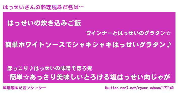 | ピコ太郎風あだ名 | 『ハッ三郎』『ピコハ郎』『ピハ太郎』 |
