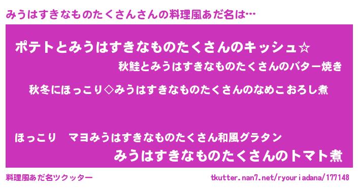 | 胡散臭い通販商品みたいなあだ名 | 『全米が絶賛したサプリメント…その名も「みうはすきなものたくさん」』 |