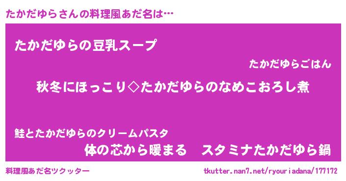 | 男性向けラノベタイトル風あだ名 | 『たかだゆらに滅ぼされるだけの簡単なお仕事です』 |
