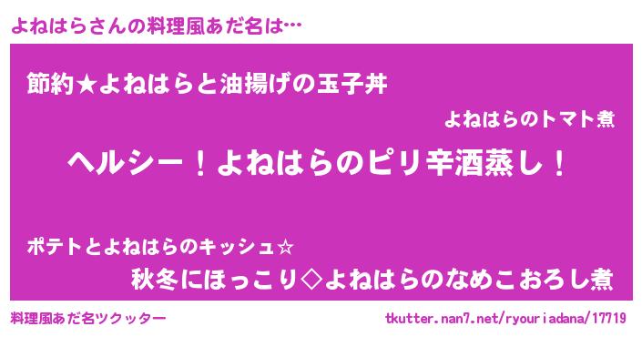| 意味不明あだ名 | 『自称よねはら』『ペロリンよねはら』 |