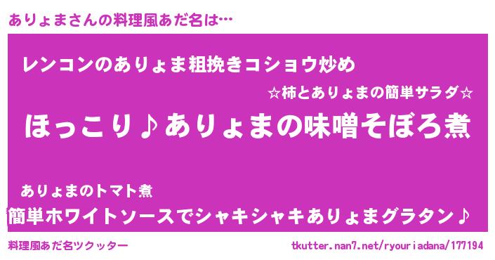 | ヘコむあだ名 | 『ありにゅー』『ありお』『つくし』 |