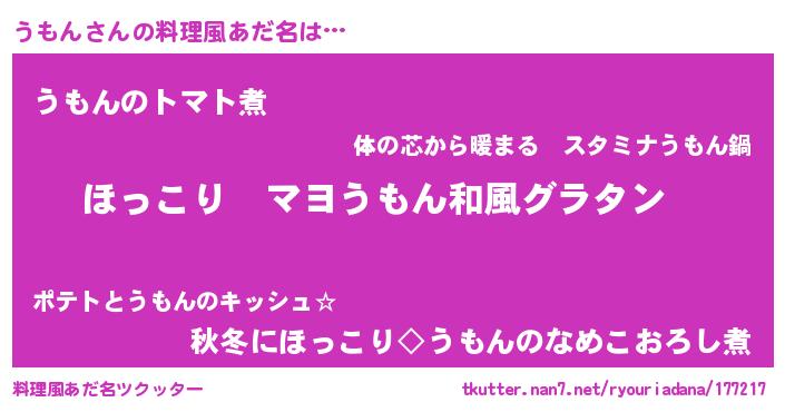 | 男性向けラノベタイトル風あだ名 | 『この素晴らしい世界にうもんを!』 |