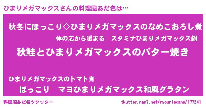 | 胡散臭い通販商品みたいなあだ名 | 『来世でも幸せになれる水素水…その名も「ひまりメガマックス」』 |