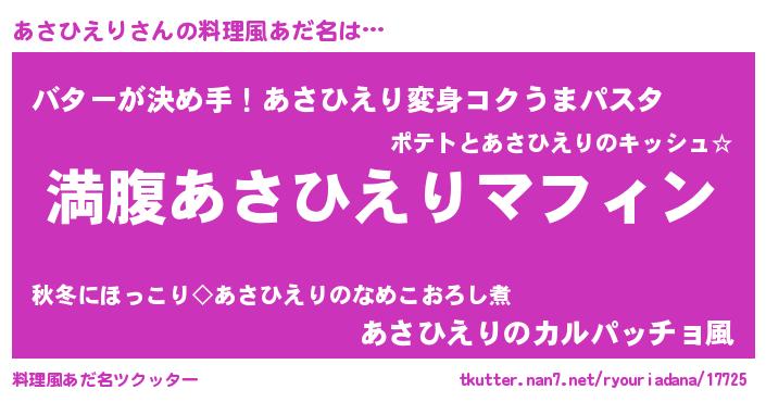 | ヘコむあだ名 | 『あさひえり(笑)』『あさを』『豆乳』 |