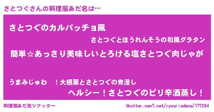 | 胡散臭い通販商品みたいなあだ名 | 『前代未聞の水素水…その名も「さとつぐ」』 |