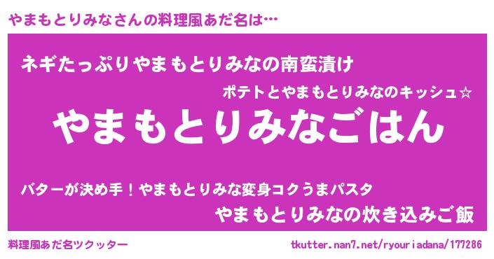 | 欧米人風あだ名 | 『トリンドルやまもとりみな』 |