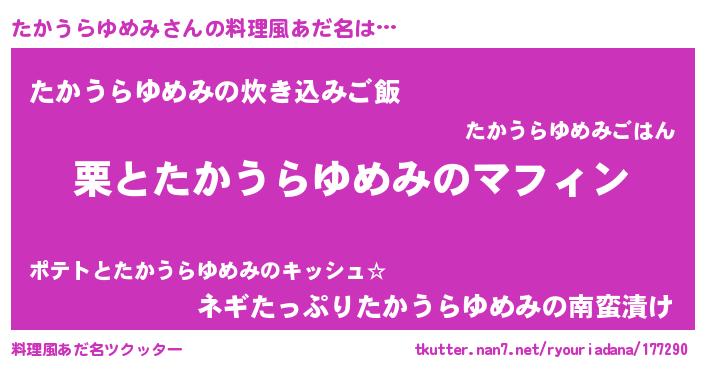 | 胡散臭い通販商品みたいなあだ名 | 『必ず成功するブレスレット…その名も「たかうらゆめみ」』 |