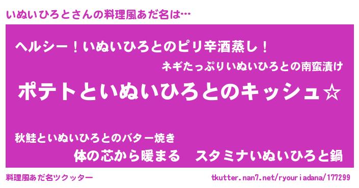 | 意味不明あだ名 | 『とにかく怪しいいぬいひろと』 |