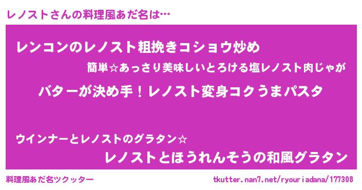 | ヘコむあだ名 | 『レノスト(小並感)』『レバニラ』 |
