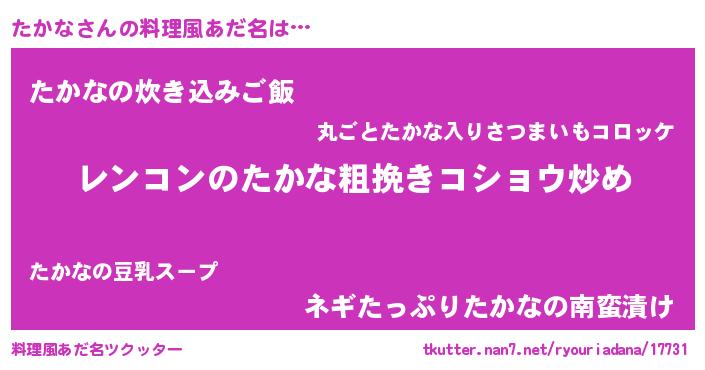 | 意味不明あだ名 | 『自称たかな』『ペロリンたかな』 |