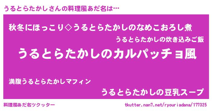 | ヘコむあだ名 | 『うるっぺ』『うるとらたかし(苦笑)』 |