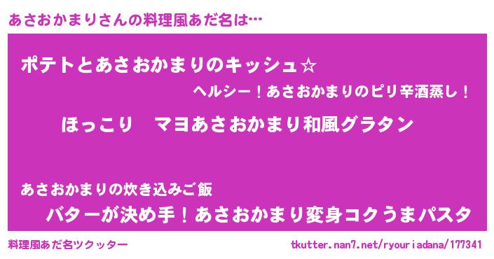 | 意味不明あだ名 | 『住所不定無職あさおかまり(77歳)』 |