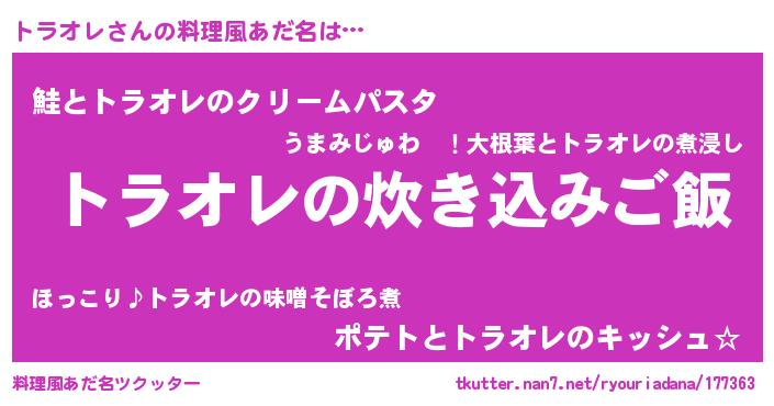 | ヒーロー風カッコイイあだ名 | 『慈愛の使者トラオレ』『魔戒騎士トラ』 |