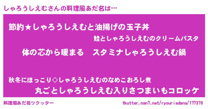 | 意味不明あだ名 | 『しゃろうしえむフォーエバー』 |