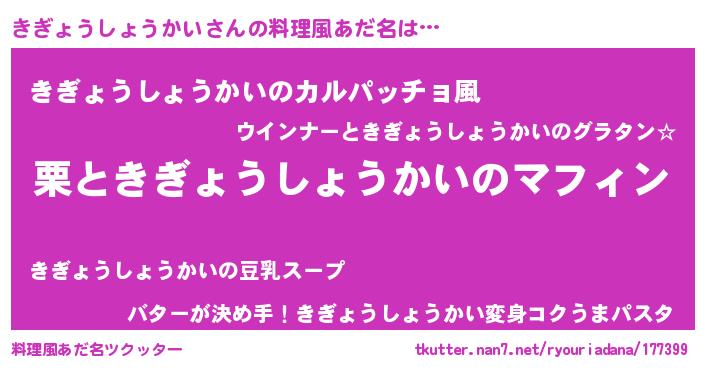 | 意味不明あだ名 | 『住所不定無職きぎょうしょうかい(74歳)』 |