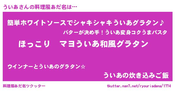 | 意味不明あだ名 | 『住所不定無職ういあ(81歳)』 |