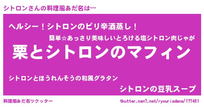 | 意味不明あだ名 | 『自称シトロン』『永久保存シトロン』 |