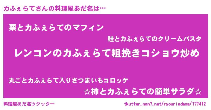 | 意味不明あだ名 | 『自称カふぇらて』『ペロリンカふぇらて』 |