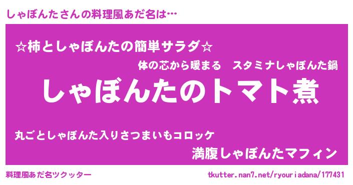 | 男性向けラノベタイトル風あだ名 | 『おまえをオタクにしてやるから、俺をしゃぼんたにしてくれ! 』 |