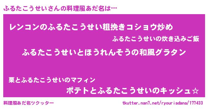 | 女子向けラノベタイトル風あだ名 | 『ふるたこうせいの玉の輿計画!』 |