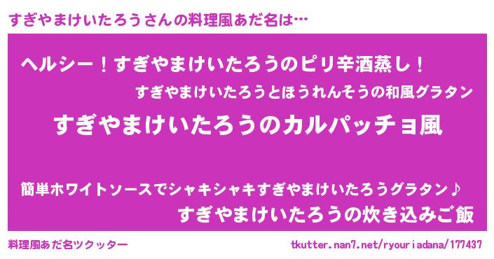 | 意味不明あだ名 | 『住所不定無職すぎやまけいたろう(40歳)』 |