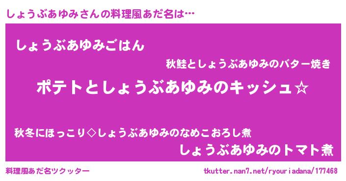 | ヘコむあだ名 | 『しょを』『しょうぶあゆみ(遠い目)』 |