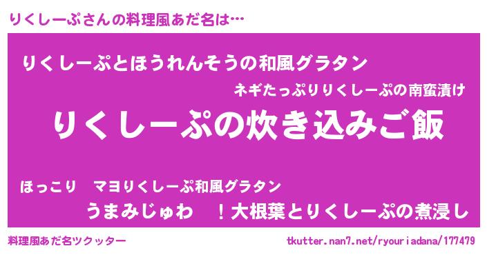 | 欧米人風あだ名 | 『りくしーぷ・ステッグマイヤー』 |