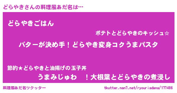 女子向けラノベタイトル風あだ名 | 『どらやき恋絵巻』『どらやきの婚約者』 |