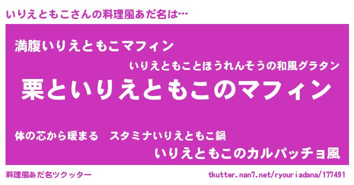 | ヘコむあだ名 | 『いりえともこ(苦笑)』『豆乳』 |