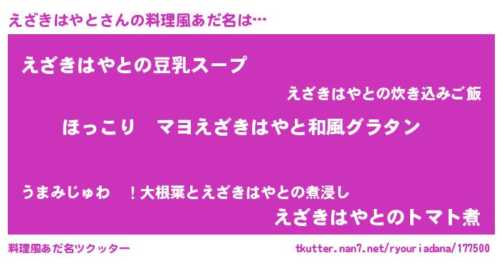 | 意味不明あだ名 | 『住所不定無職えざきはやと(91歳)』 |