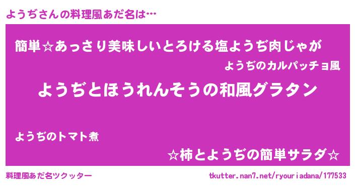 | ピコ太郎風あだ名 | 『ピコヨ郎』『ヨヨ太郎』『ヨウ十郎』 |
