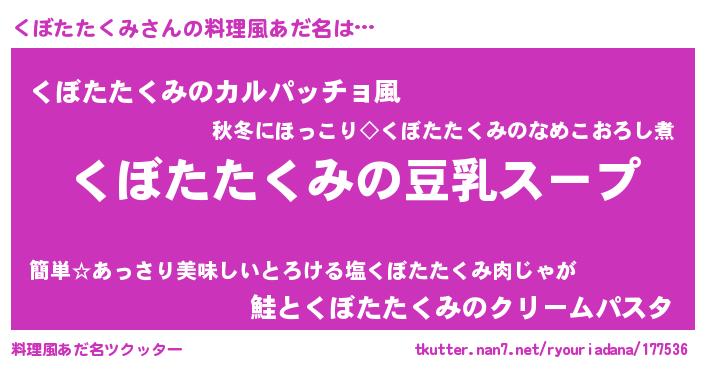 | 胡散臭い通販商品みたいなあだ名 | 『信頼と実績のサプリメント…その名も「くぼたたくみ」』 |