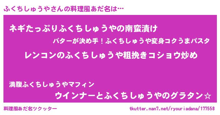 | 恥ずかしいあだ名 | 『フクチシュウヤデラックス』『ふくちん』 |