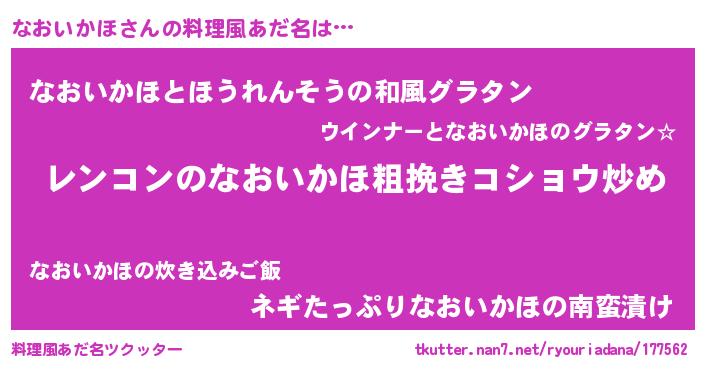 | 意味不明あだ名 | 『自称なおいかほ』『ペロリンなおいかほ』 |
