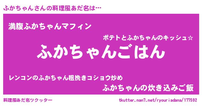 | ヘコむあだ名 | 『ふかちゃん(遠い目)』『ふかっぺ』 |