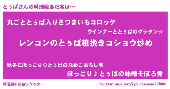 | 胡散臭い通販商品みたいなあだ名 | 『テレビで話題の高麗人参…その名も「とぅば」』 |