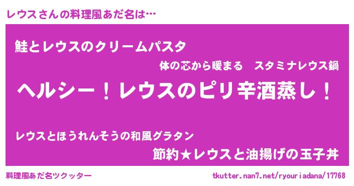 | 女子向けラノベタイトル風あだ名 | 『闇のレウス』『死神レウスの再婚』 |