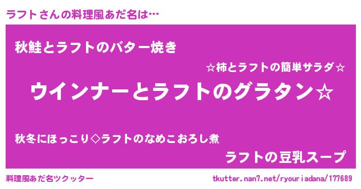 | 意味不明あだ名 | 『ラフトフォーエバー』『永久保存ラフト』 |