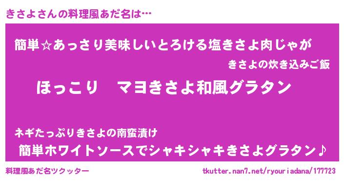 | 意味不明あだ名 | 『住所不定無職きさよ(2歳)』 |