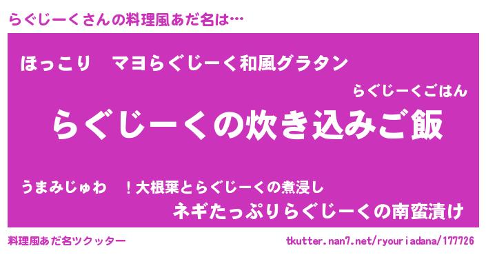 | 胡散臭い通販商品みたいなあだ名 | 『あなたにだけ特別に提供する100年もののヴィンテージワイン…その名も「らぐじーく」』 |