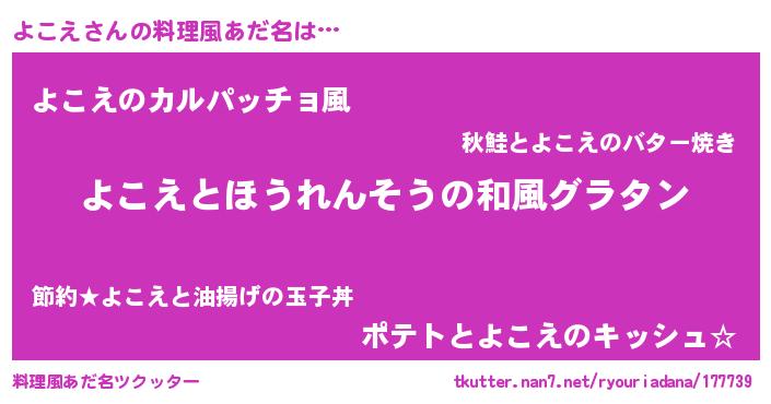 | 男性向けラノベタイトル風あだ名 | 『転生したらよこえだった件』 |