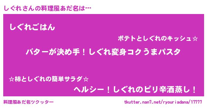 | 意味不明あだ名 | 『眠気覚ましガムしぐれ味』『自称しぐれ』 |