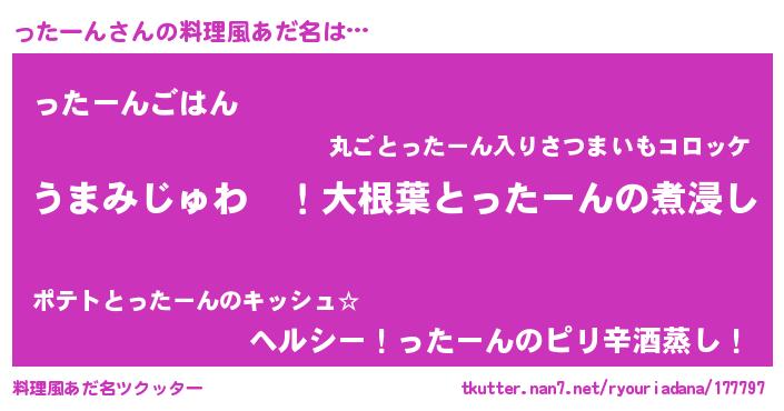 | 意味不明あだ名 | 『ったーんフォーエバー』『自称ったーん』 |