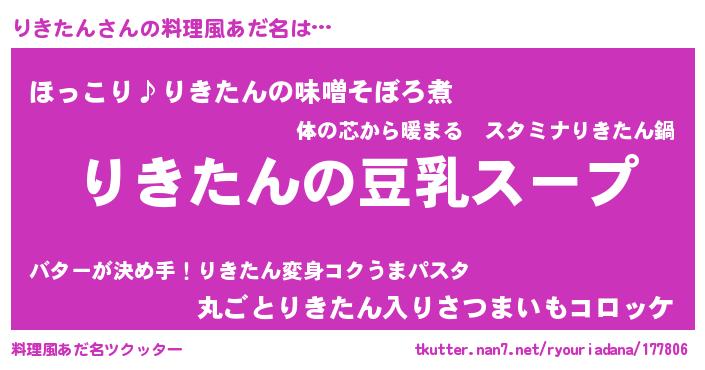| 胡散臭い通販商品みたいなあだ名 | 『信頼と実績のサプリメント…その名も「りきたん」』 |