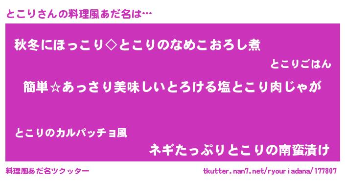 | 意味不明あだ名 | 『永久保存とこり』『ペロリンとこり』 |