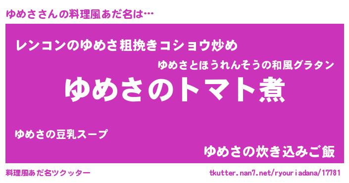 | ポケモン風あだ名 | 『ユックウザ』『ユメセウス』 |