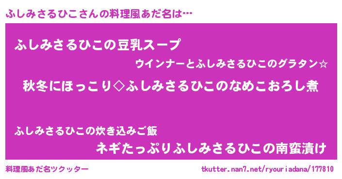 | ピコ太郎風あだ名 | 『フシ十郎』『フコ四郎』『ピフ十郎』 |