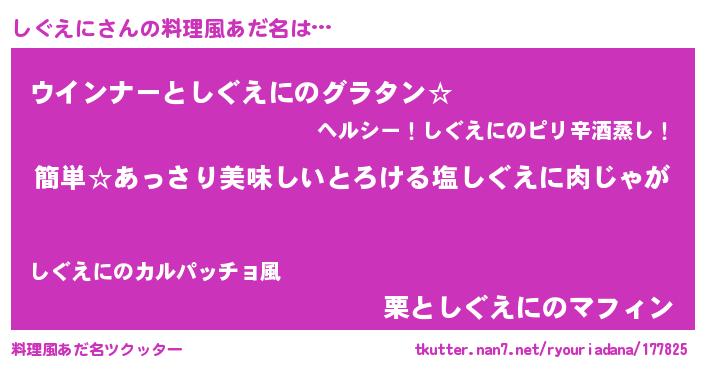 | 意味不明あだ名 | 『永久保存しぐえに』『自称しぐえに』 |