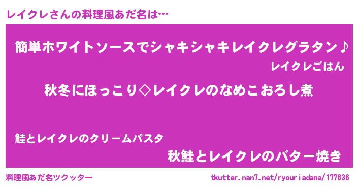 | 男性向けラノベタイトル風あだ名 | 『レイクレに滅ぼされるだけの簡単なお仕事です』 |