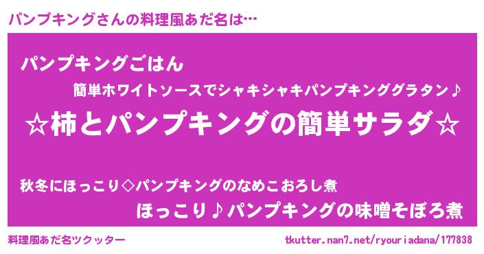 | 胡散臭い通販商品みたいなあだ名 | 『必ず成功するブレスレット…その名も「パンプキング」』 |